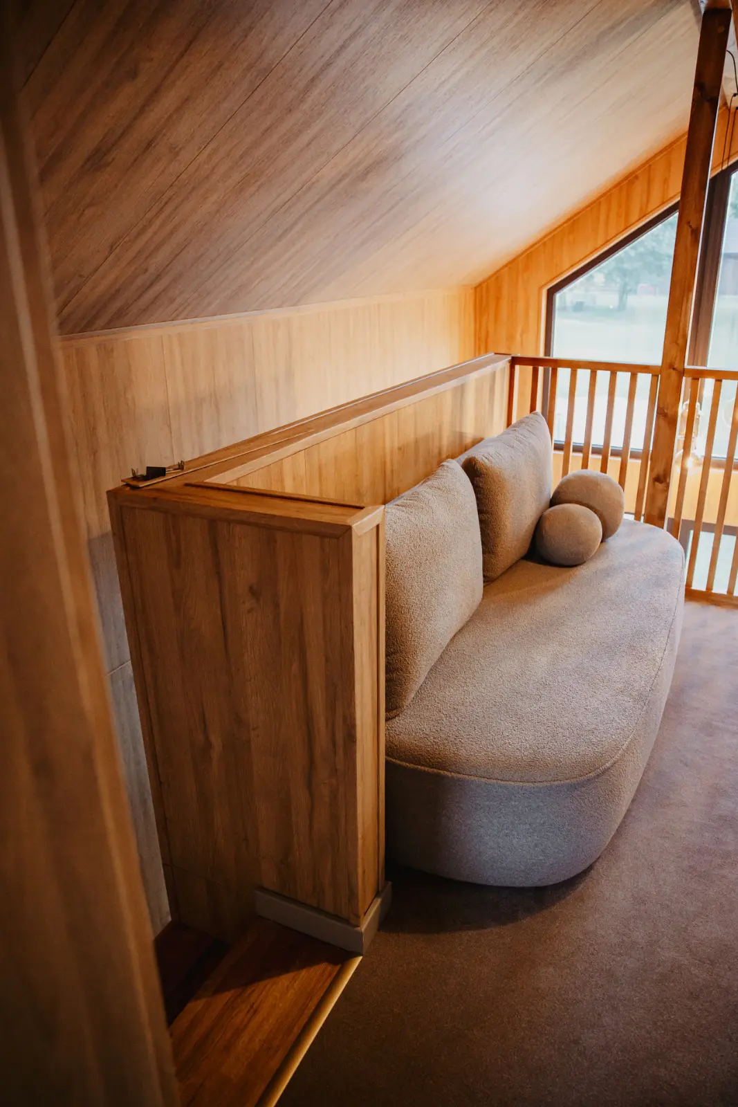 - antresoli, która stanowi dodatkową przestrzeń do relaksu lub snu.