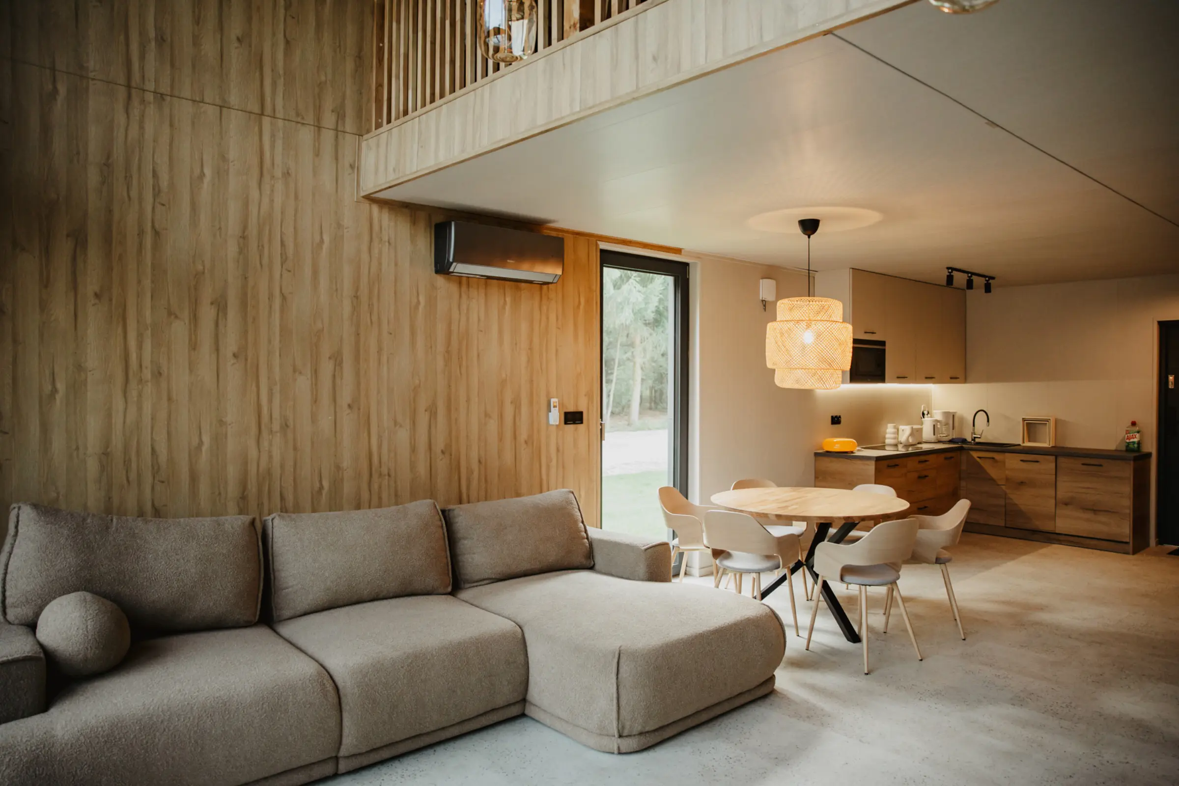 Nasze nowoczesne, całoroczne domki o powierzchni 63 m² to idealne miejsce dla par, rodzin z dziećmi, grup przyjaciół oraz wszystkich, którzy szukają spokoju, komfortu i kontaktu z naturą. Domki zaprojektowane są tak, aby łączyć luksusowy standard z przytulną atmosferą wypoczynku w lesie.