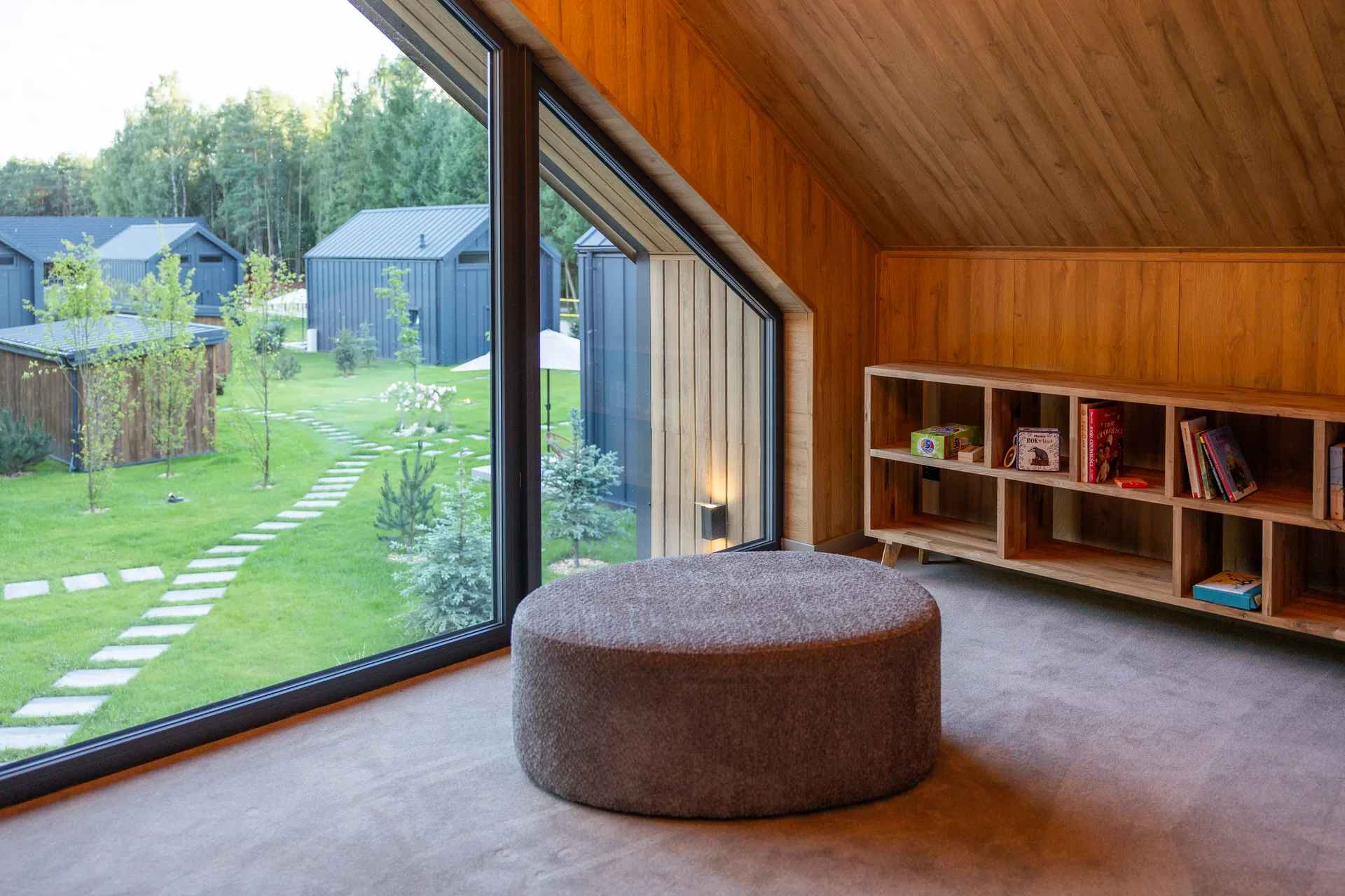 Na terenie ośrodka znajduje się wiele atrakcji Stodoła Eventową, miejsce gdzie można zorganizować imprezę spotkanie dla wielu gości. Tuż obok znajduje się miejsce na ognisko a pomiędzy domami znajdują się dwie zewnętrzne sauny. Dla najmłodszych gości zbudowaliśmy urozmaicony drewniany plac zabaw.
