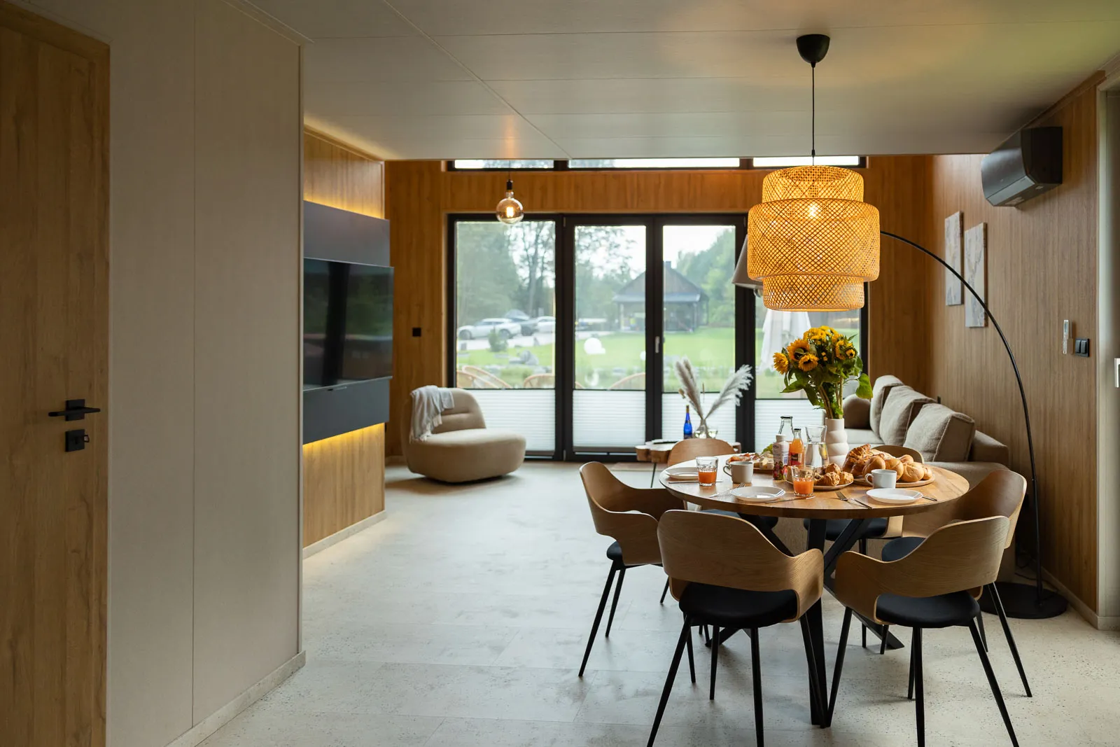 Nowoczesne całoroczne piętrowe domki z ogrzewaniem, kominkiem i klimatyzacją. W domkach znajduje się również salon z wyposażonym aneksem kuchennym oraz łazienka z ciepłą bieżącą wodą. Do dyspozycji są też 2 sypialnie. Przed każdym domkiem znajduje się balia z hydromasażem