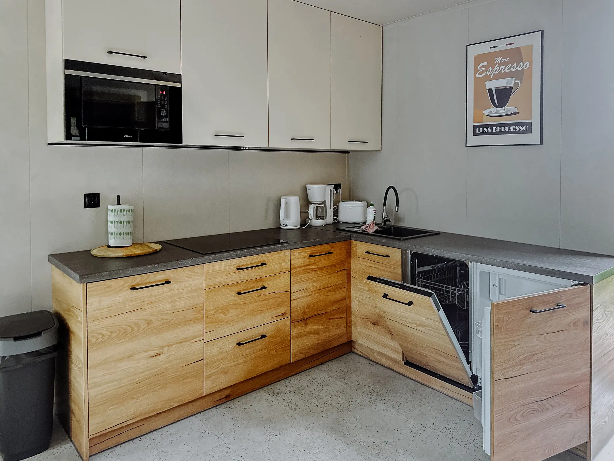 Do dyspozycji gości oddajemy nowoczesny aneks kuchenny, w którym znajduje się: