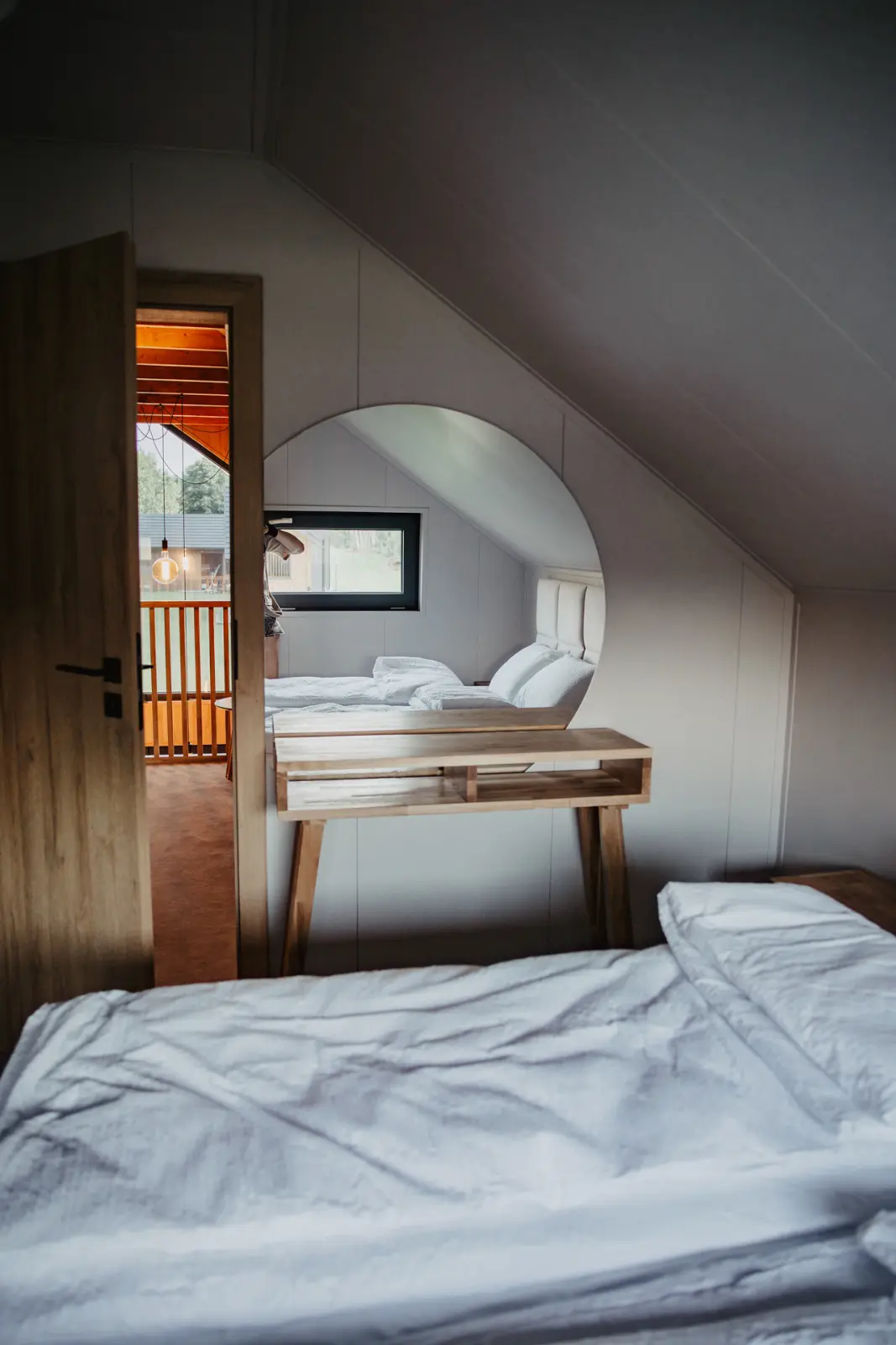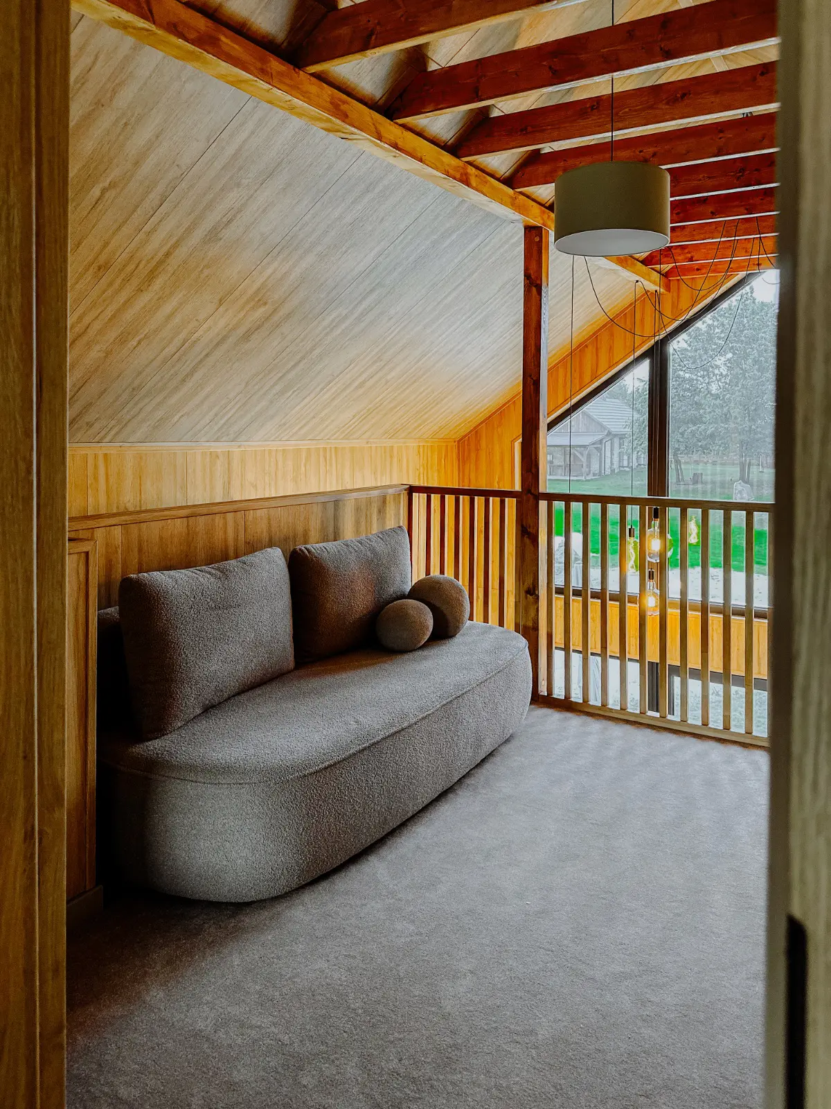 - antresoli, która stanowi dodatkową przestrzeń do relaksu lub snu.