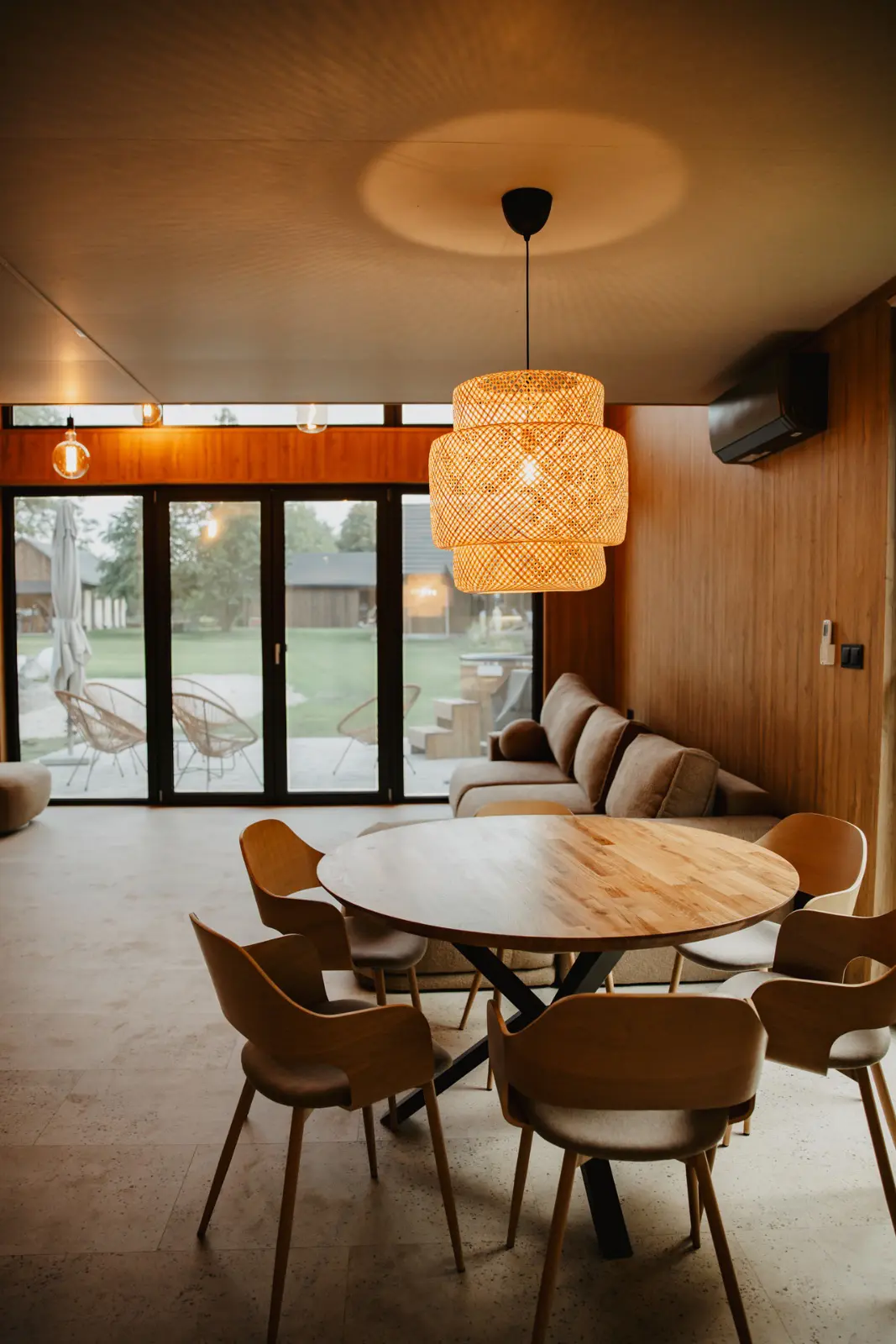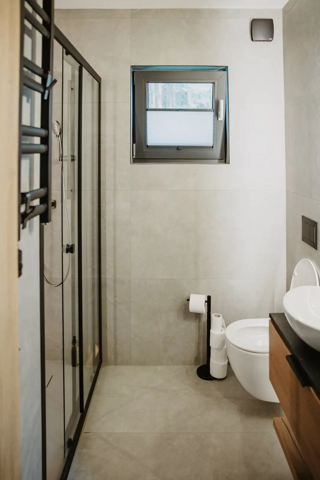 Nasze nowoczesne, całoroczne domki o powierzchni 63 m² to idealne miejsce dla par, rodzin z dziećmi, grup przyjaciół oraz wszystkich, którzy szukają spokoju, komfortu i kontaktu z naturą. Domki zaprojektowane są tak, aby łączyć luksusowy standard z przytulną atmosferą wypoczynku w lesie.